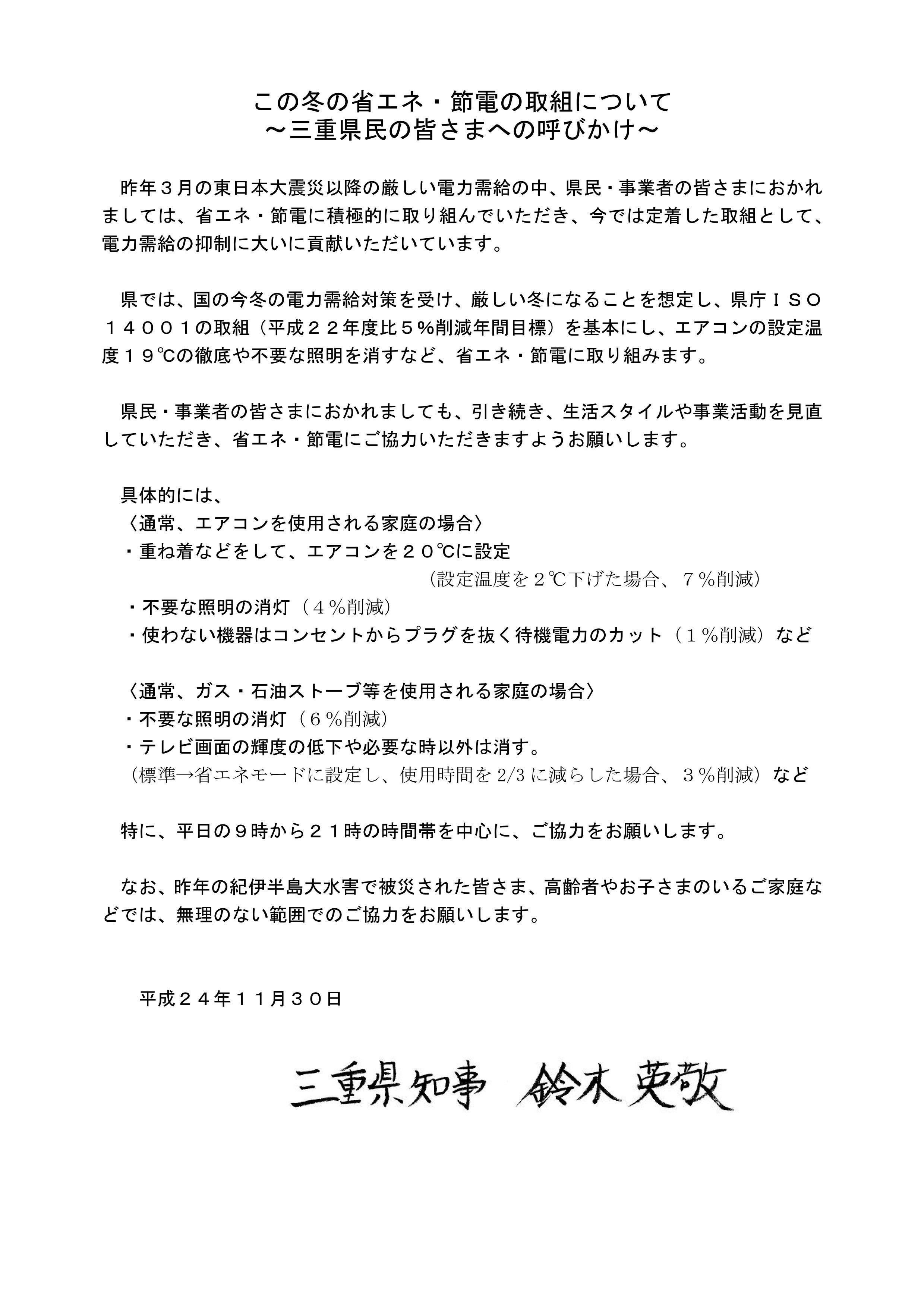 この冬の省エネ・節電の取り組みについて