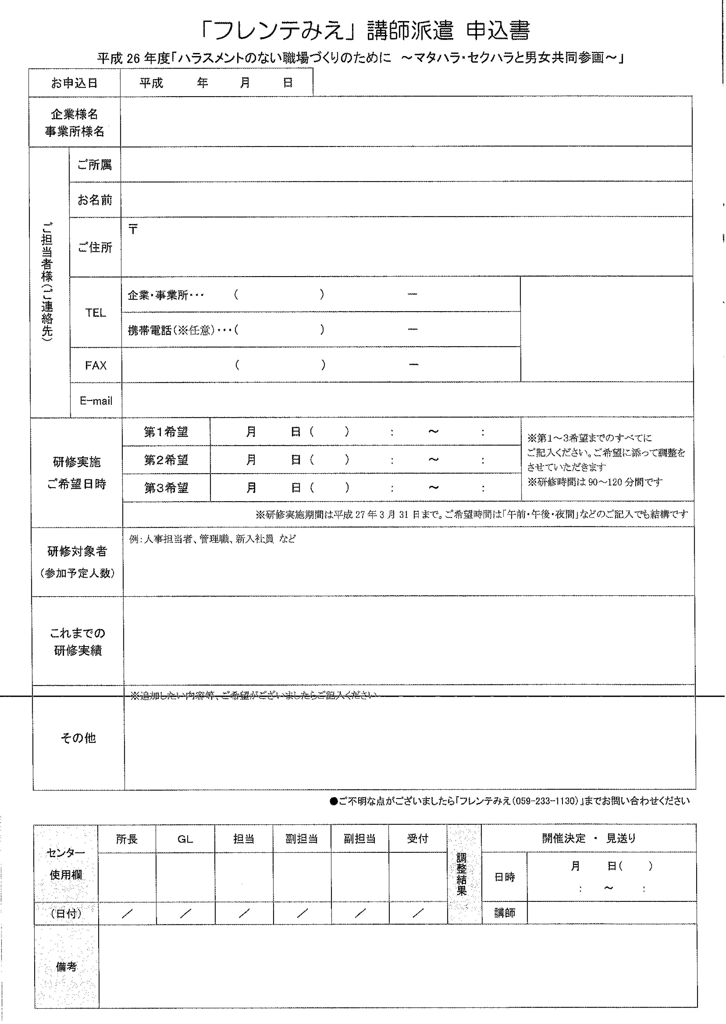 ハラスメントのない職場づくりのために~マタハラ・セクハラと男女共同参画~(社員研修をご検討中の三重県内企業・事業所の皆様へ)