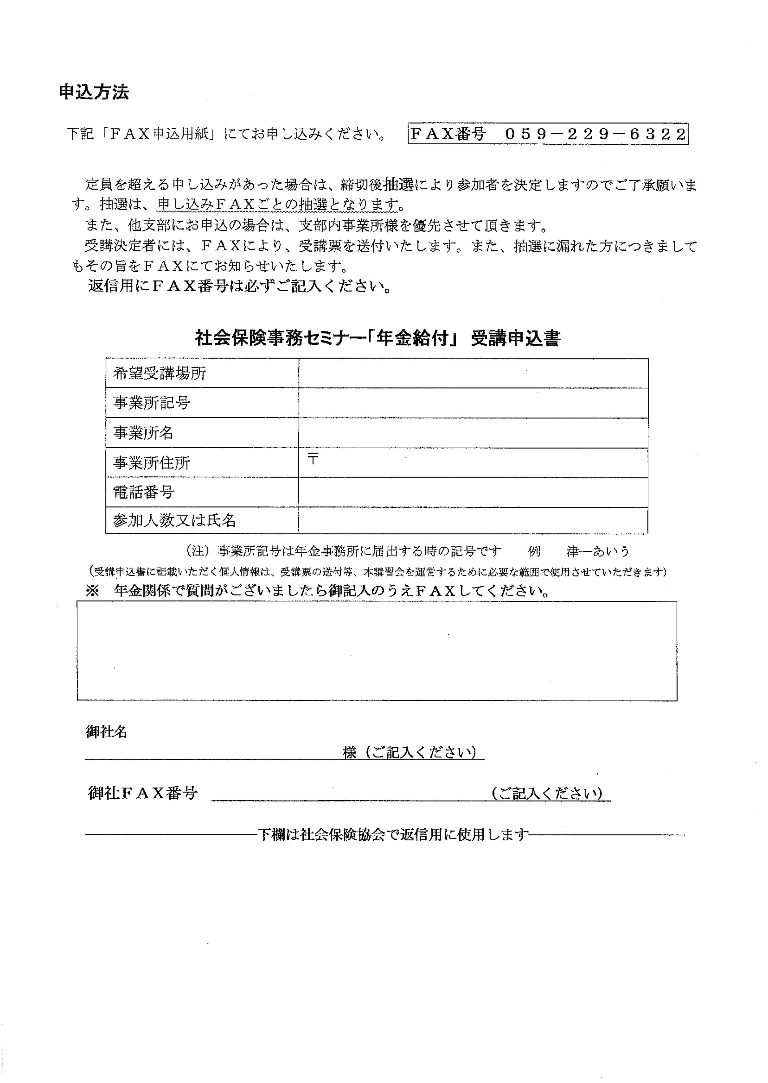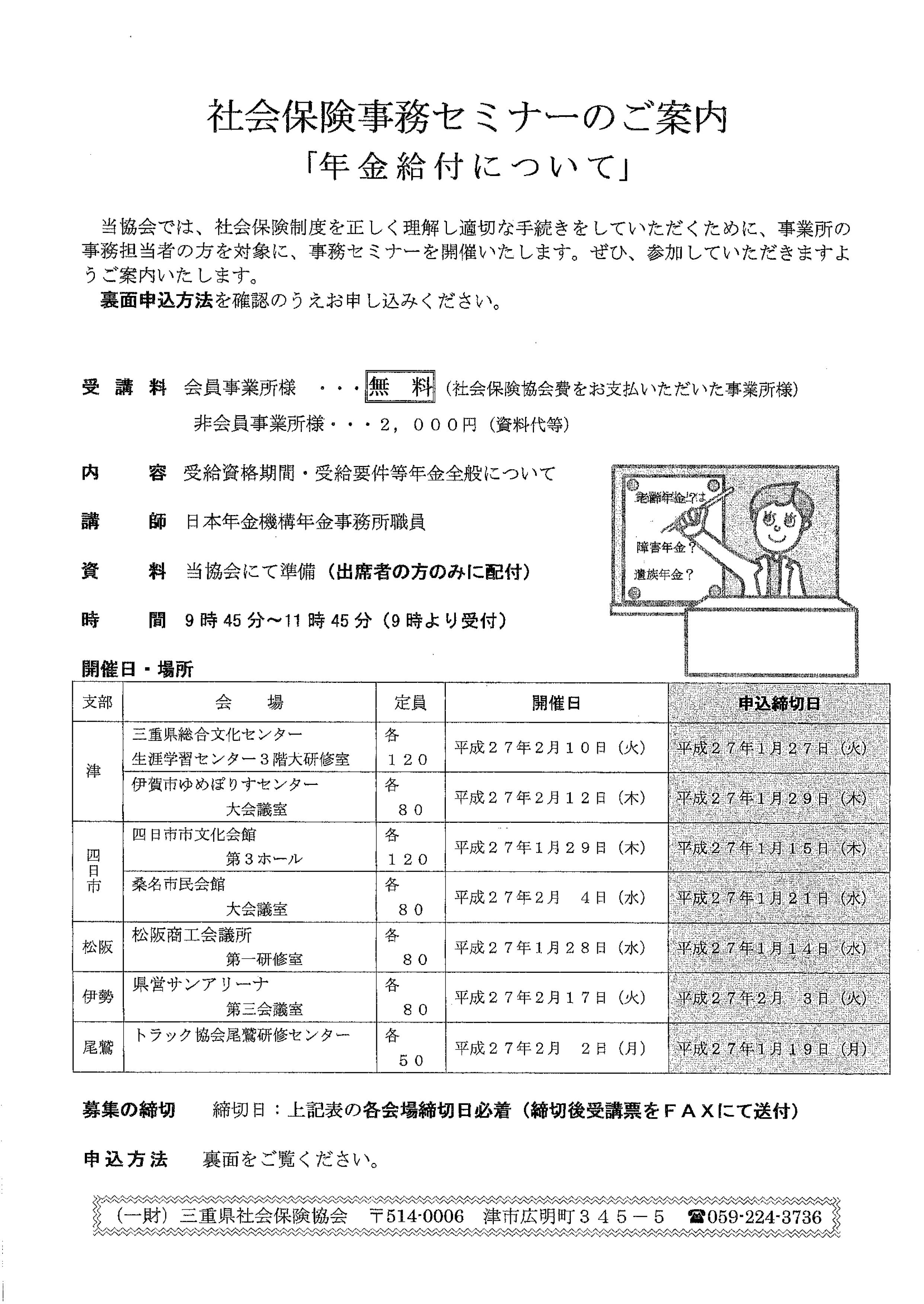 社会保険事務セミナーのご案内「年金給付について」(2月2日(月)トラック協会尾鷲研修センター)