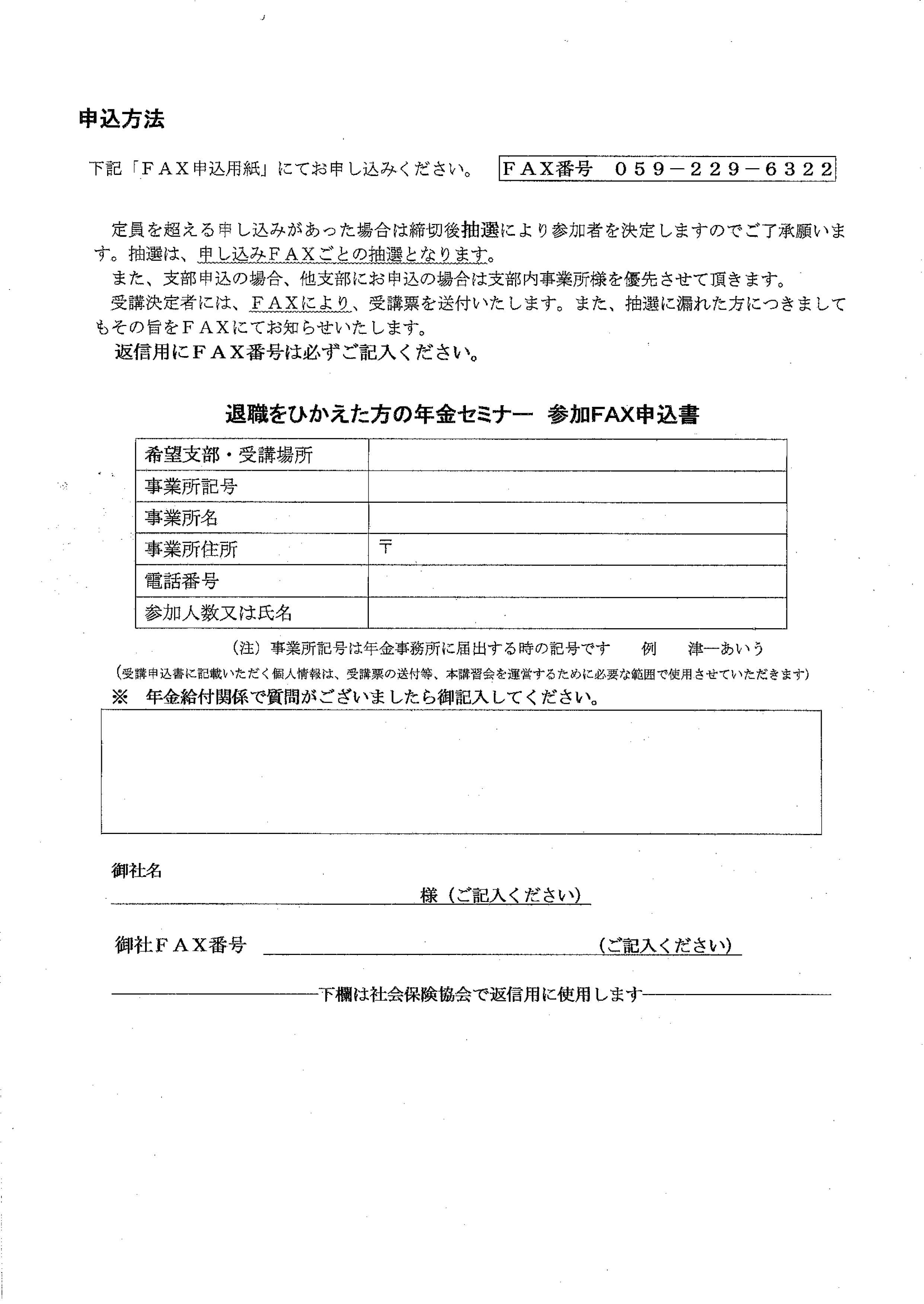 退職をひかえた方の年金セミナーのご案内(2月2日(月)トラック協会尾鷲研修センター)