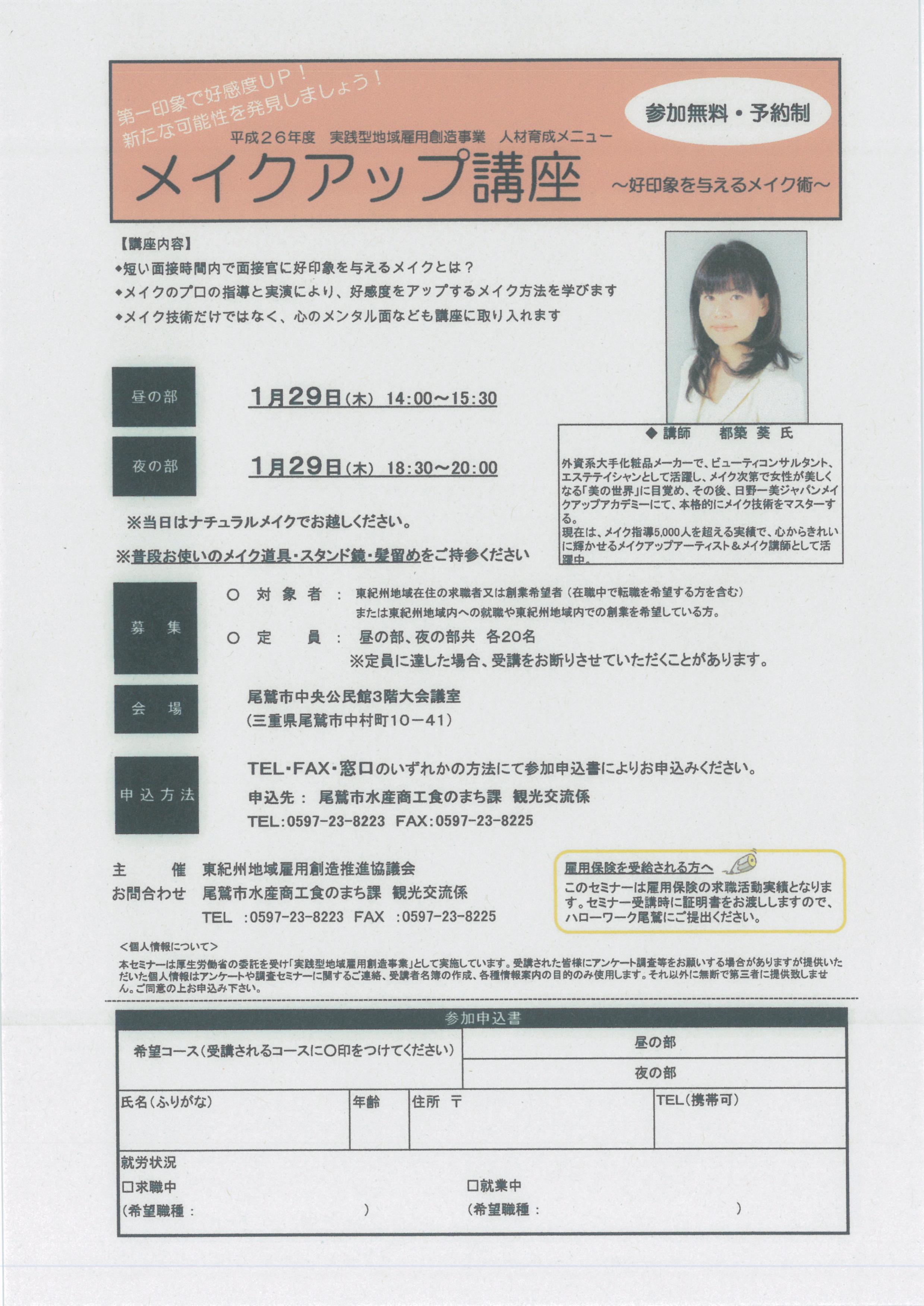 メイクアップ講座~好印象を与えるメイク術~(1月29日(木)於:尾鷲市中央公民館)