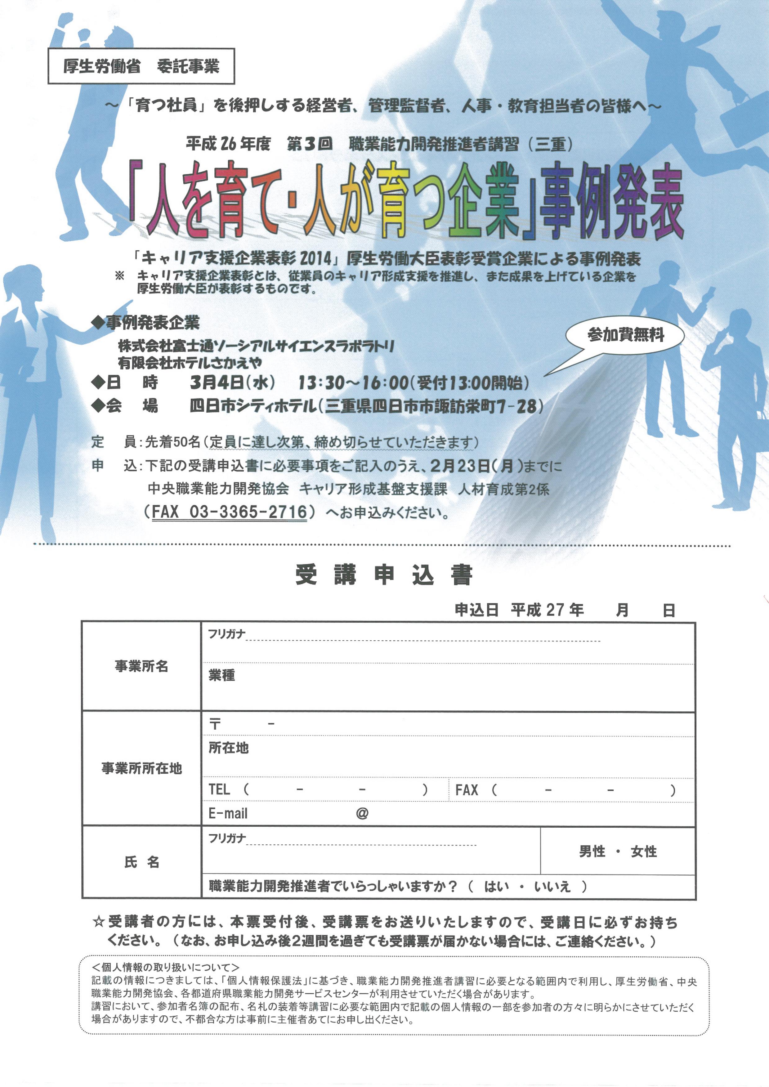 平成26年度第3回職業能力開発推進者講習「人を育て・人が育つ企業」事例発表(3月4日(水)於:四日市市)