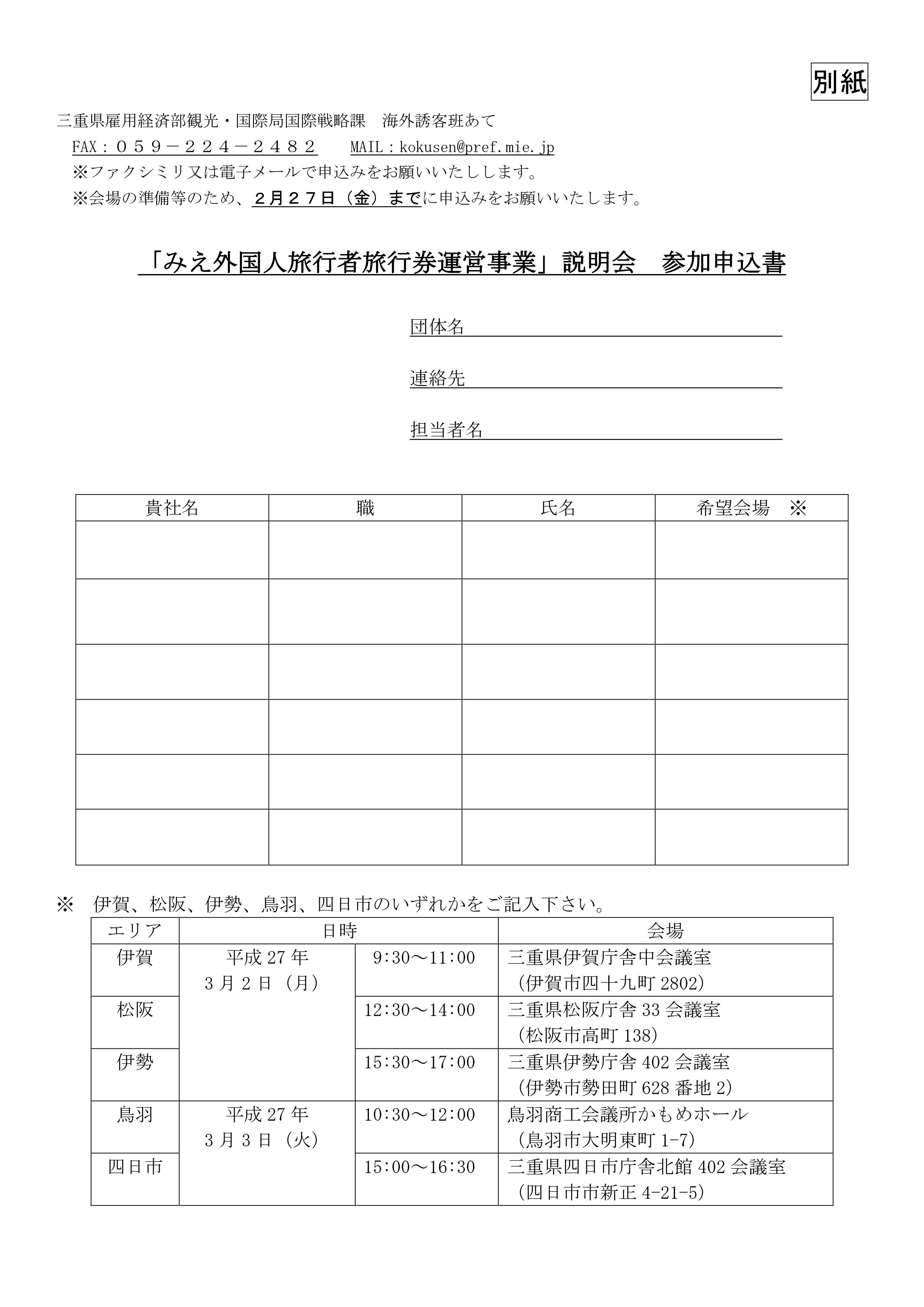 「みえ外国旅行者旅行券(宿泊券・商品券)の指定ホテル・店舗募集」にかかる説明会開催のご案内