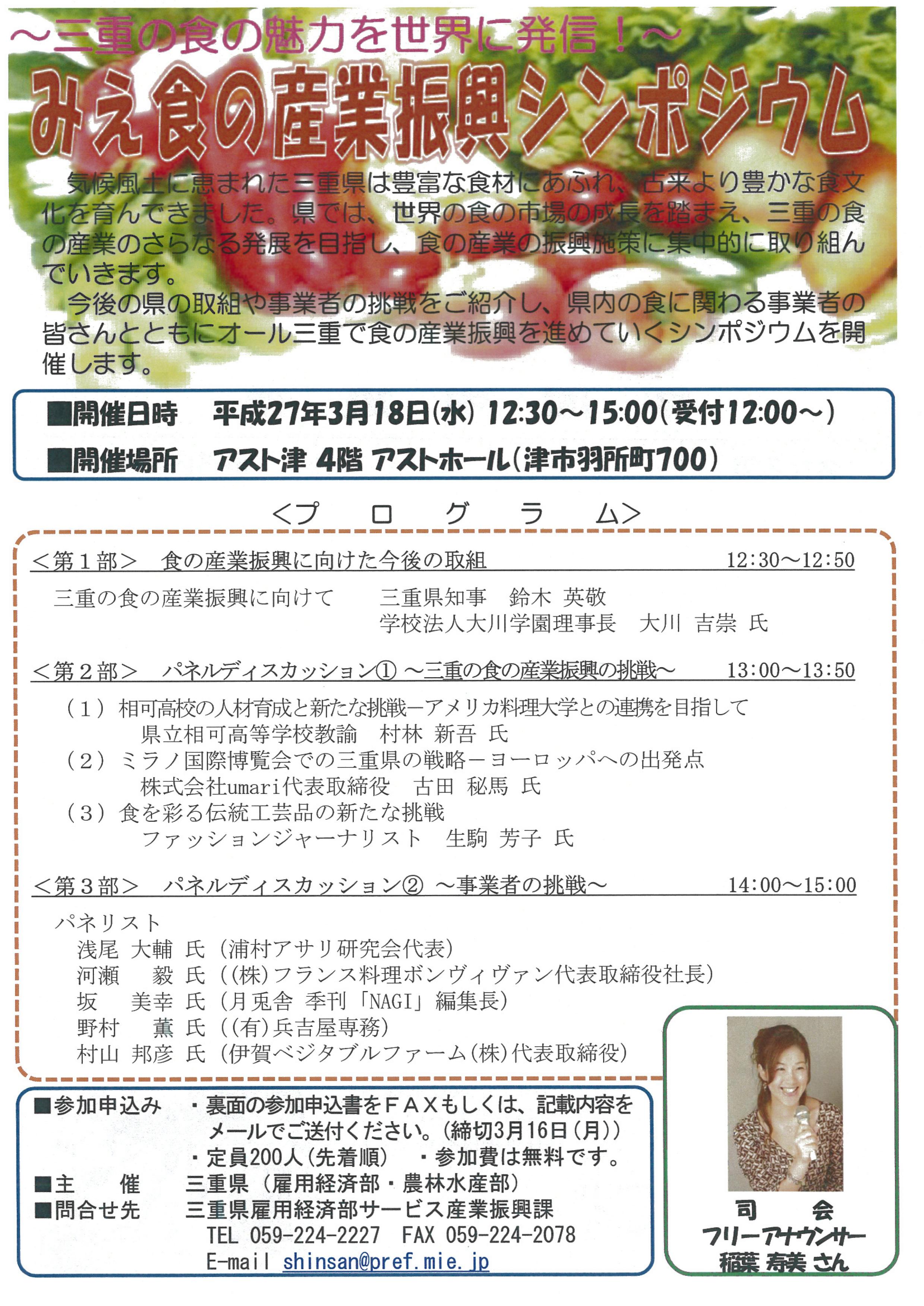みえの食の産業振興シンポジウム(3月18日(水)於:津市)