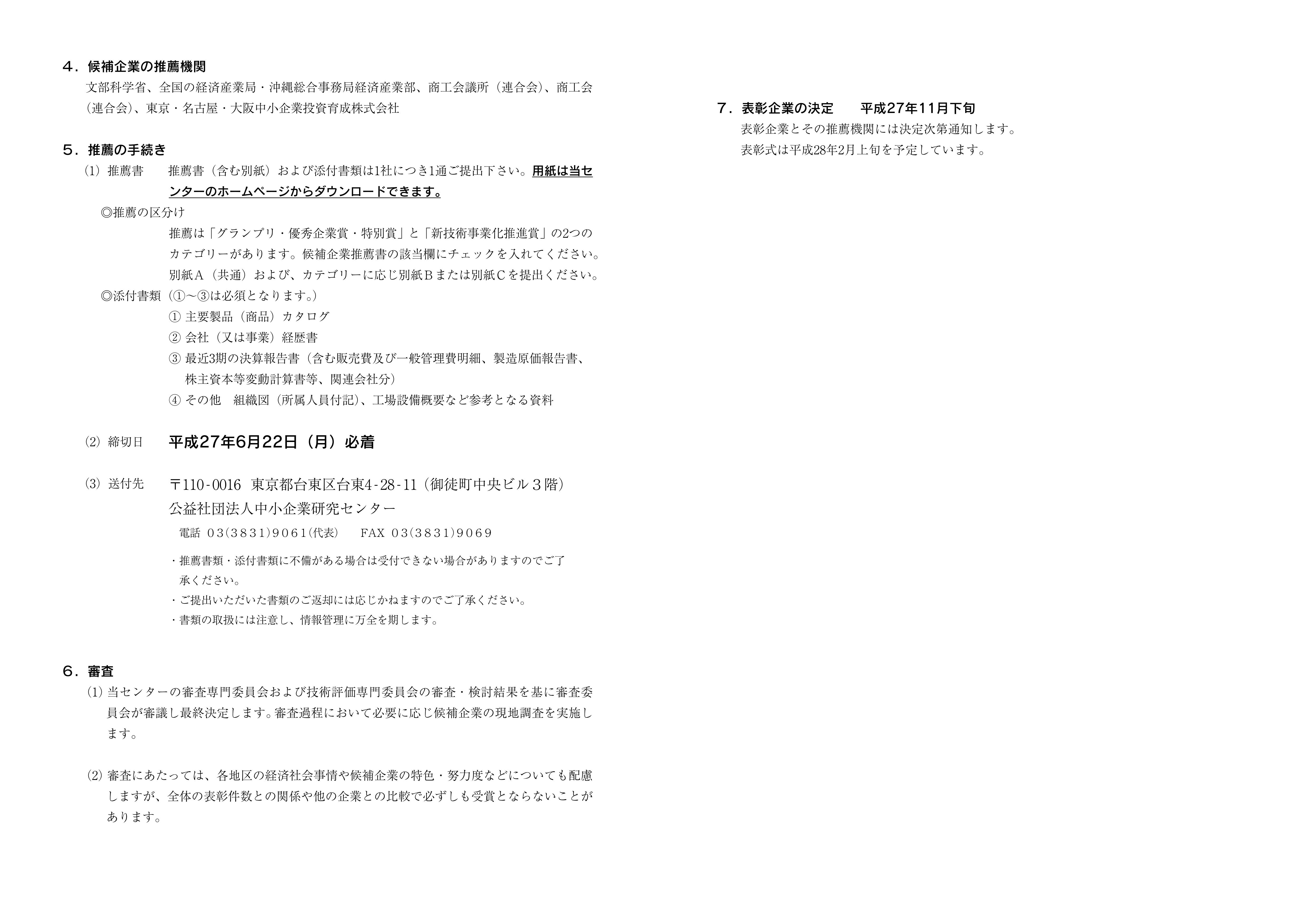 第49回(平成27年度)グッドカンパニー大賞候補企業推薦について