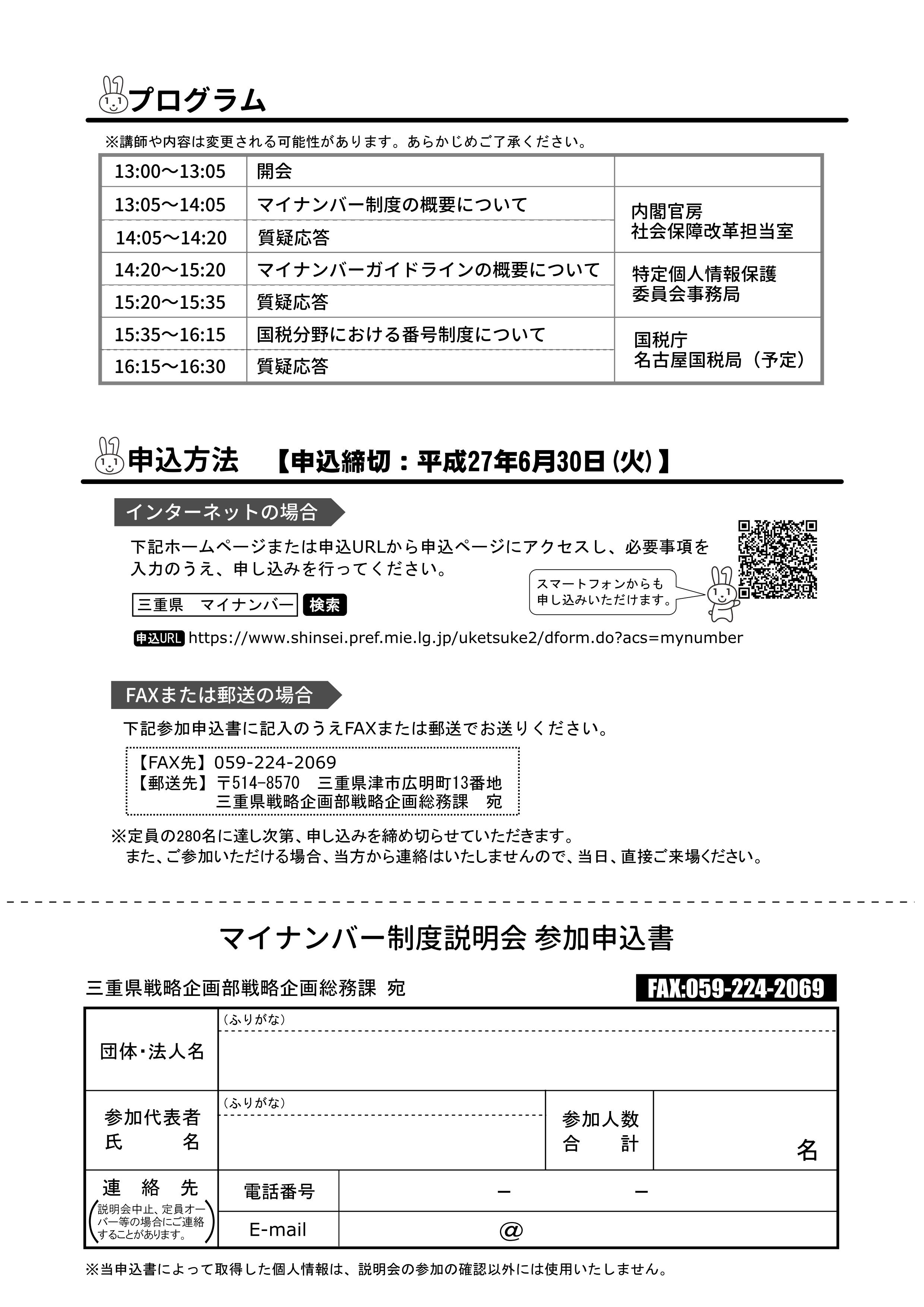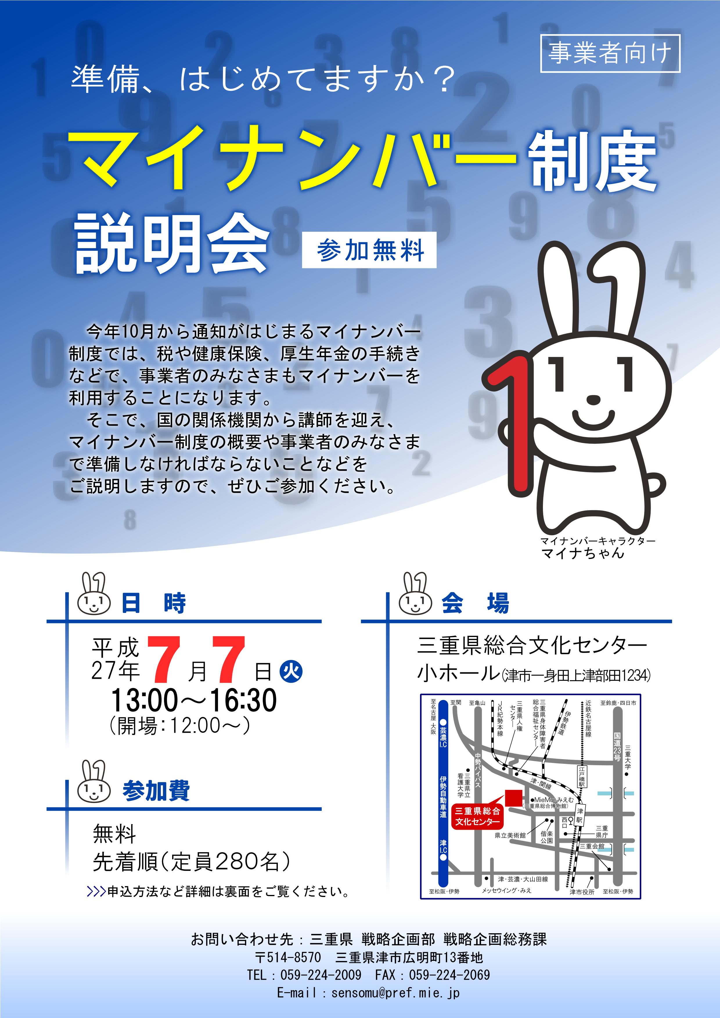 【事業者向け】マイナンバー制度説明会(7月7日(火)於:三重県総合文化センター)参加無料