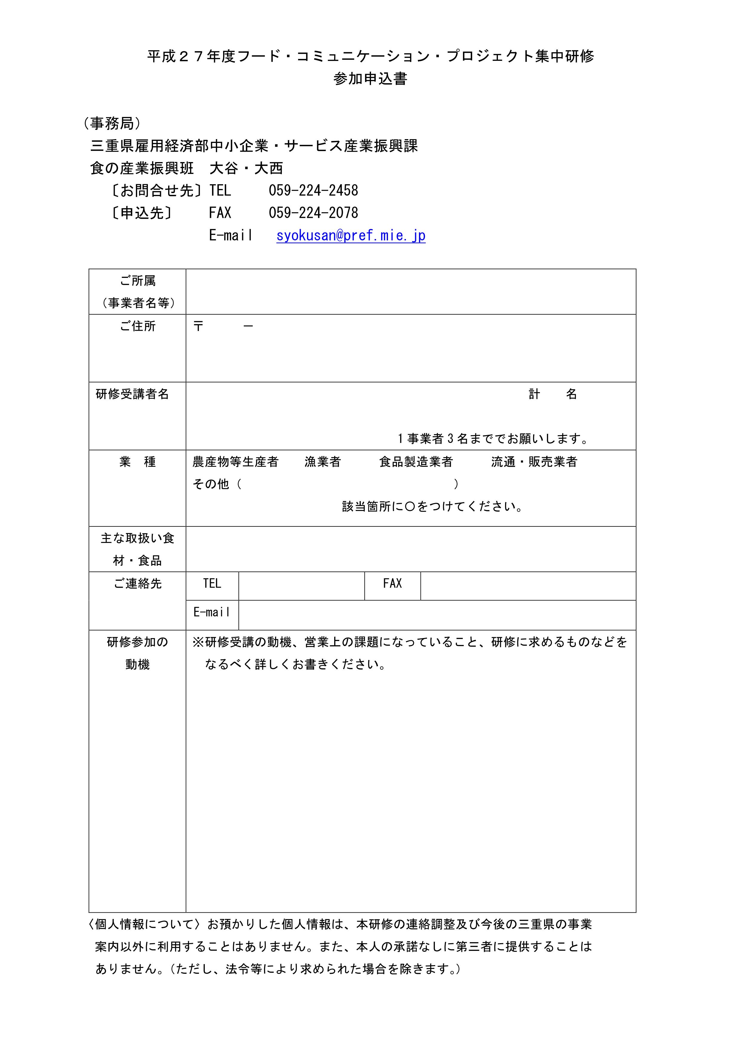 平成27年度FCP(フード・コミュニケーション・プロジェクト)集中研修参加者募集のご案内