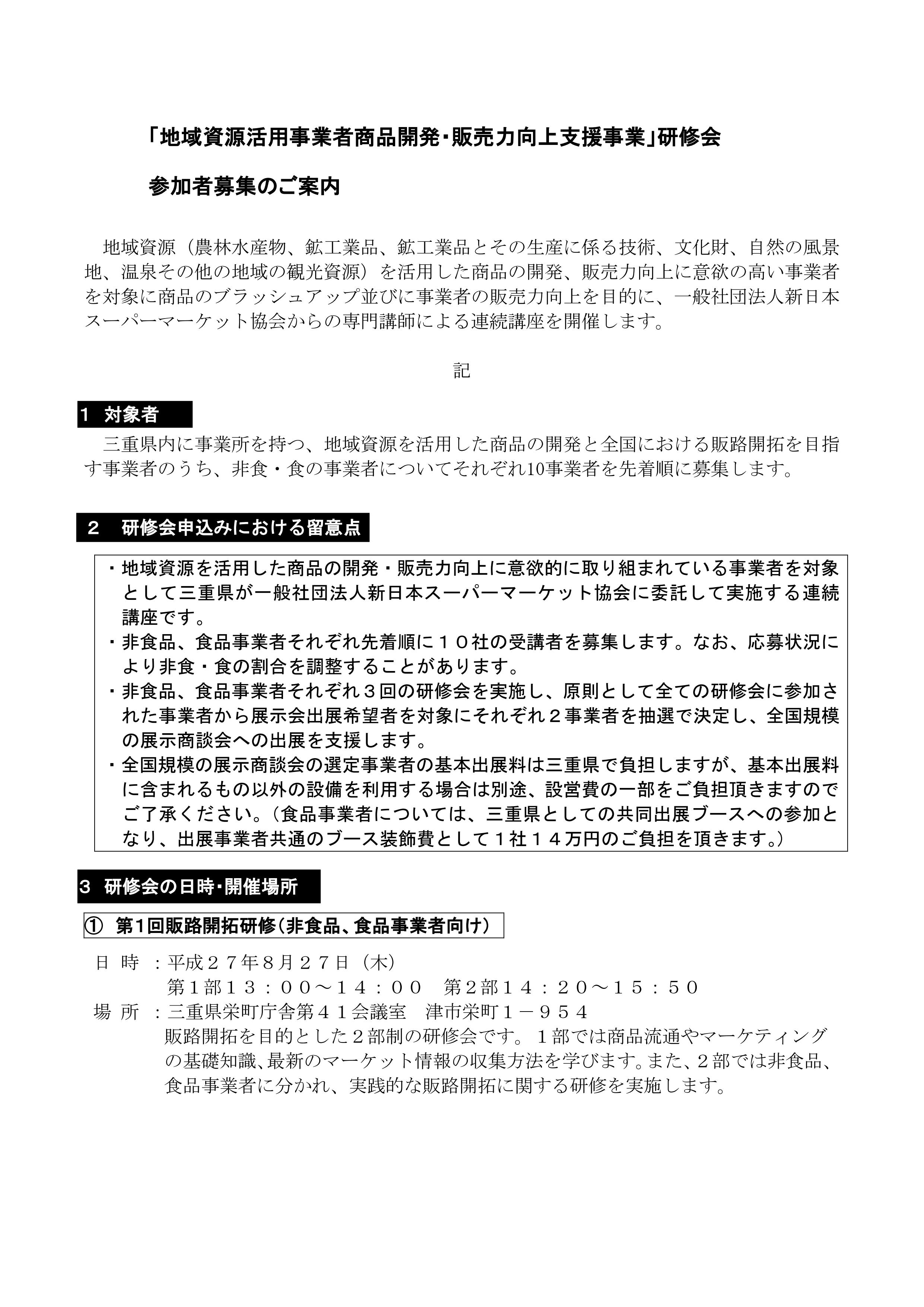 「地域資源活用事業者商品開発・販売力向上支援事業」研修会参加者募集!