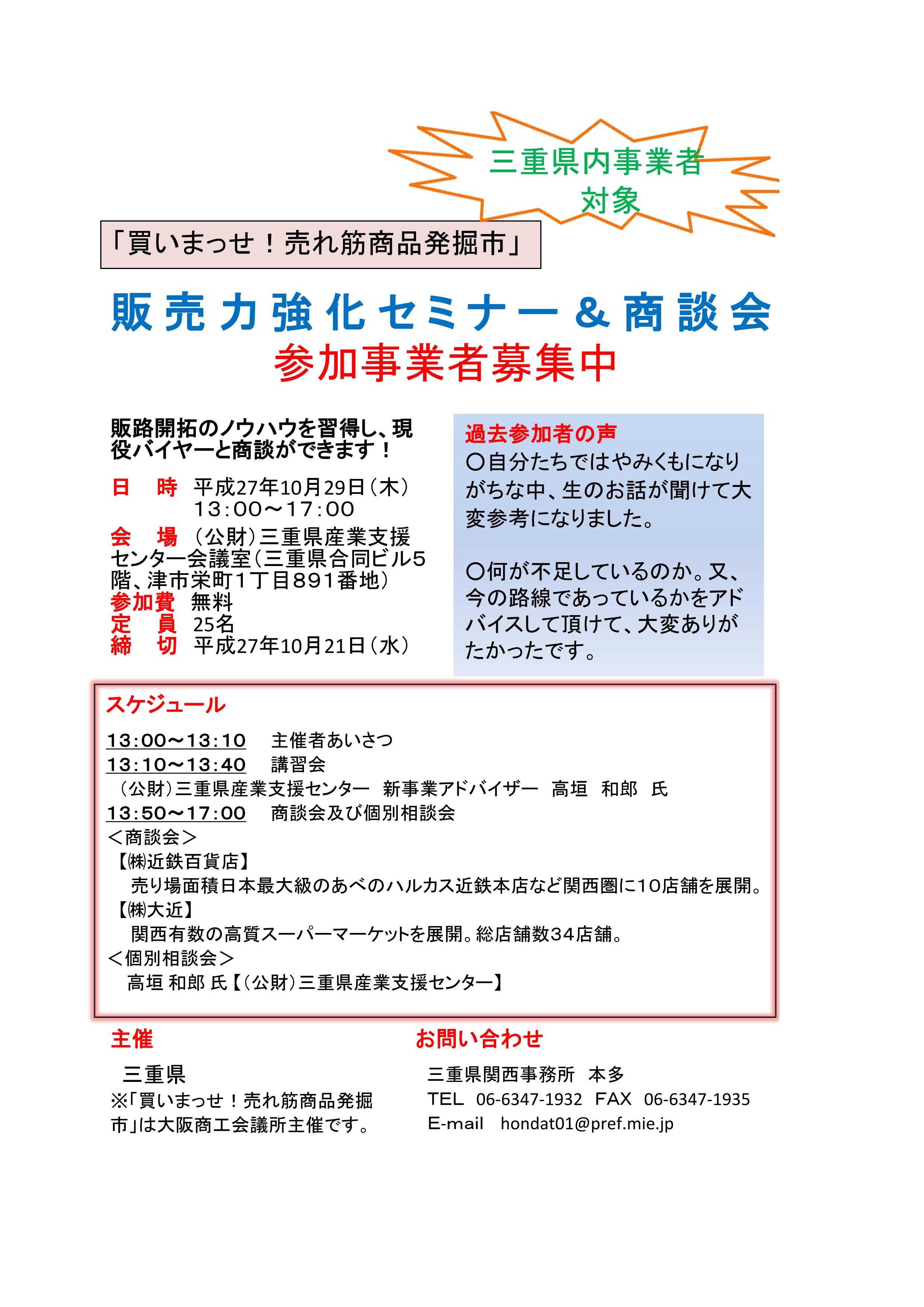 「買いまっせ!売れ筋商品発掘市」販売力強化セミナー&商談会参加事業者募集中!(10/29(木)於:津市)