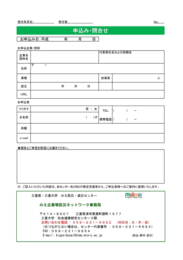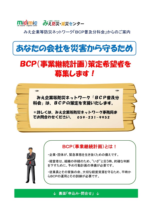 みえ企業防災ネットワーク「BCP普及分科会」によるBCP策定希望者の募集について