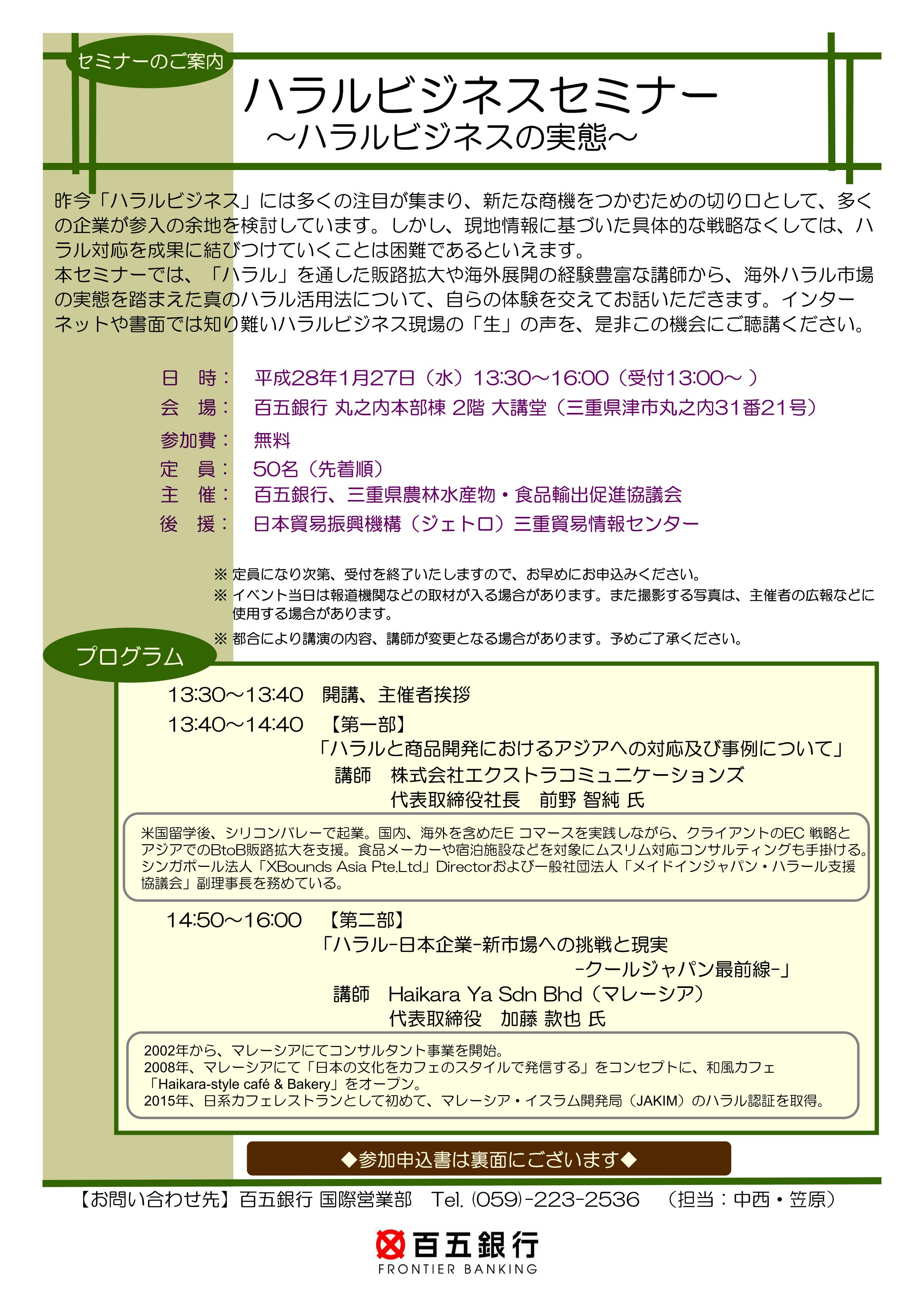 ハラルビジネスセミナー~ハラルビジネスの実態~(1/27(水)於:津市)