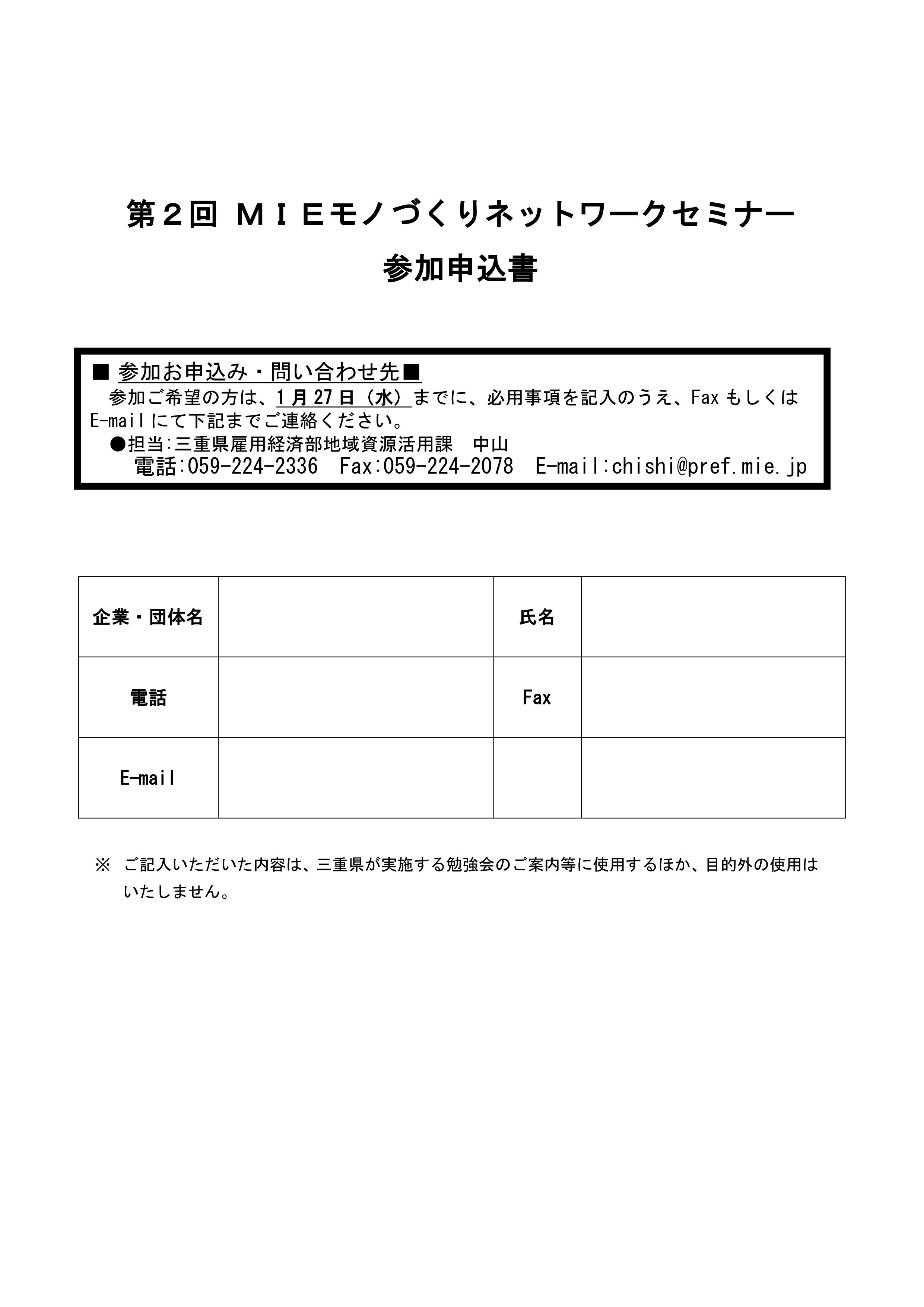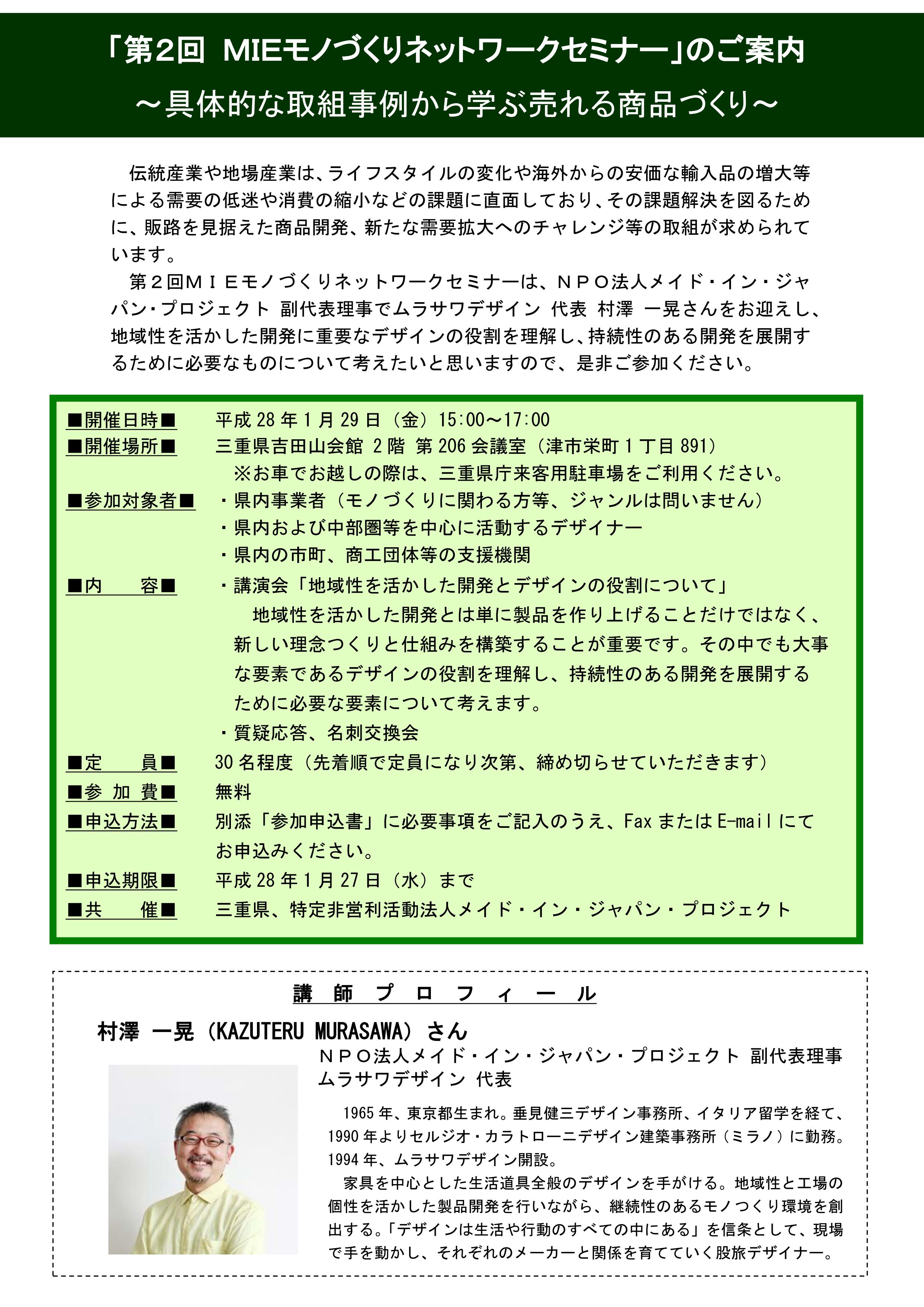 第2回MIEモノづくりネットワークセミナーのご案内(1/29(金)於:津市)