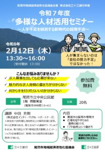 令和7年度 多様な人材活用セミナー(尾鷲市地域経済活性化協議会主催 株式会社三十三銀行共催)
