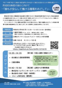 2月9日(月)「外国人労働者の適正雇用と日本社会への適応を促進するための憲章」普及セミナーについて(三重県)