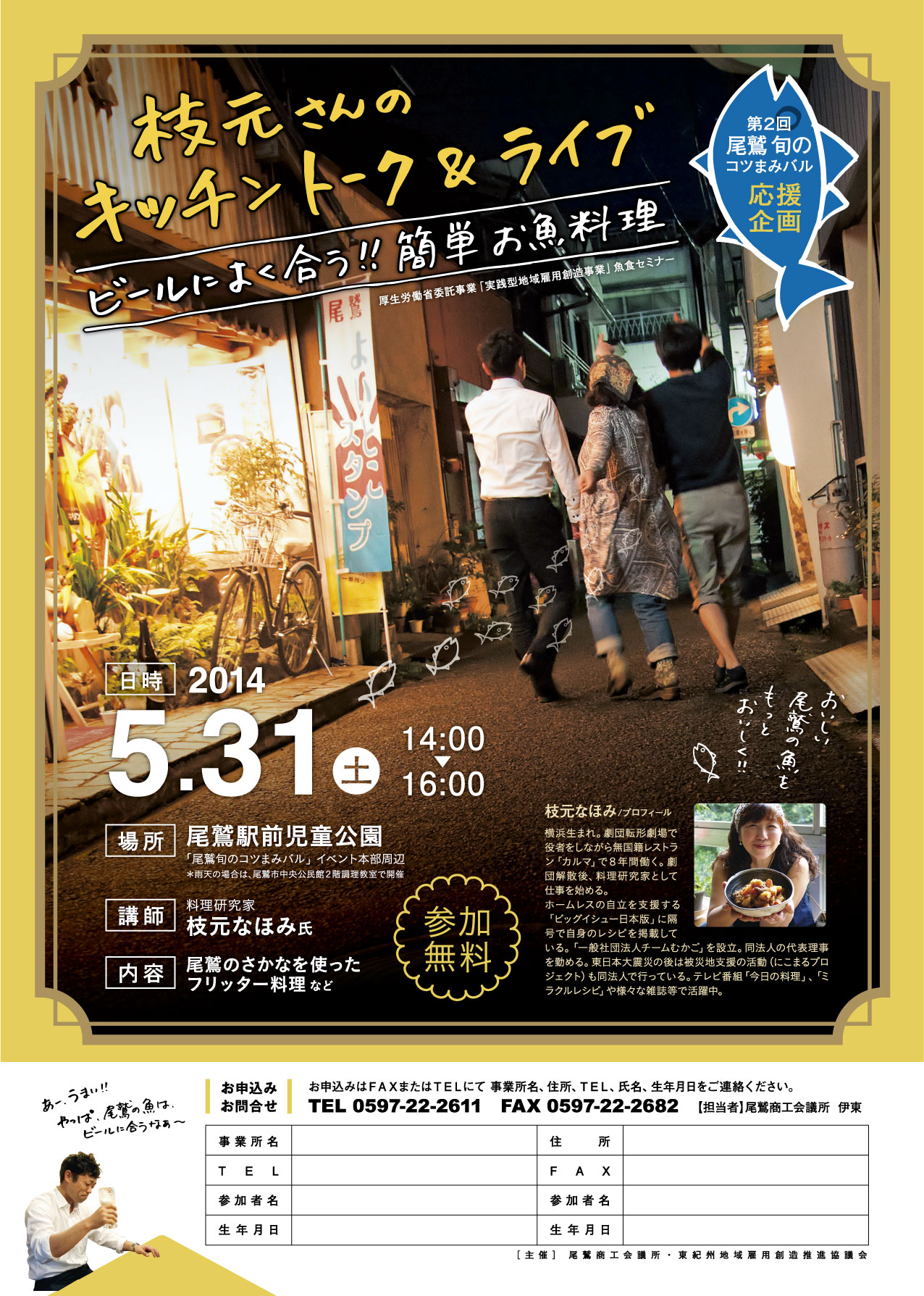 第2回尾鷲旬のコツまみバルイベント応援企画といたしまして、料理研究家枝元なほみさんによるキッチントーク&ライブを行います!!