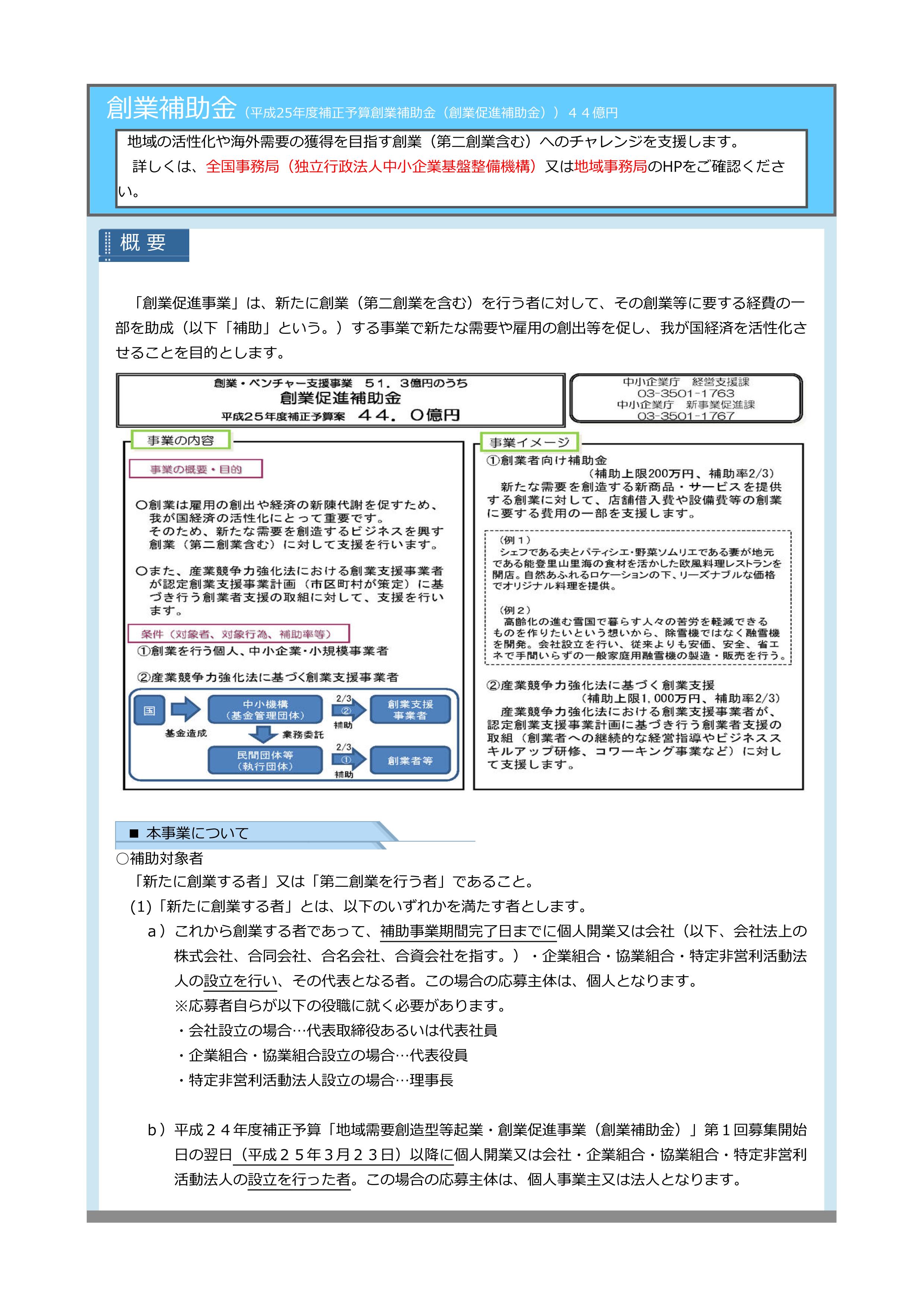 平成25年度補正予算創業促進事業(創業促進補助金))のご案内