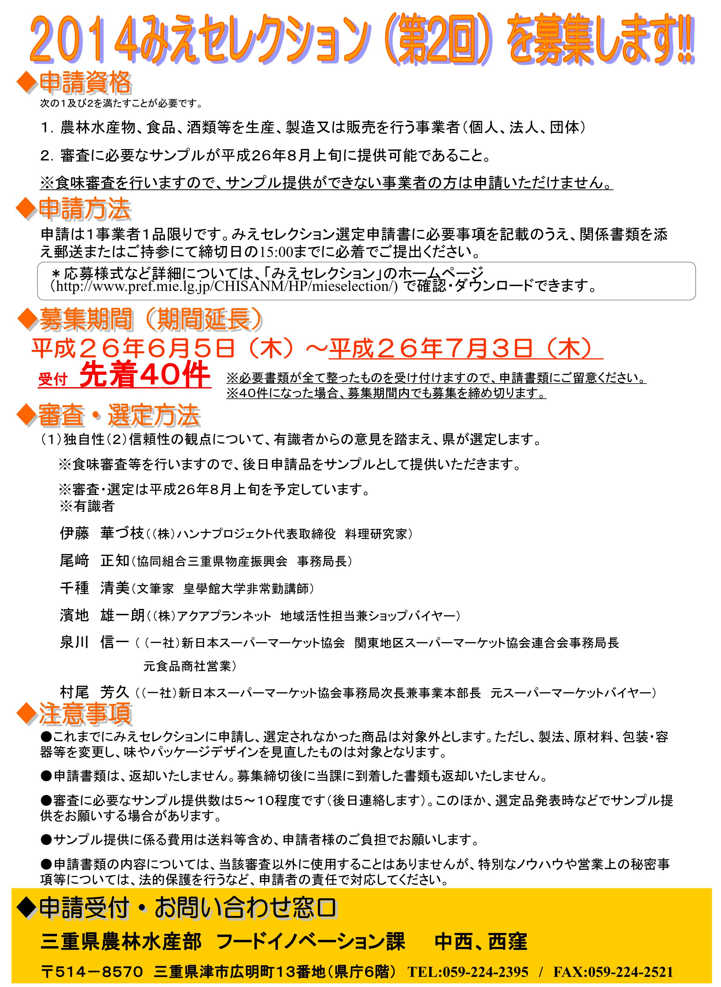2014みえセレクションの第2回の募集について(募集期間延長!!)
